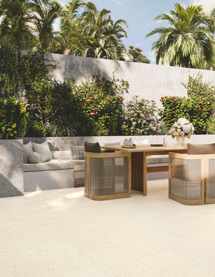 Do terraço à piscina, cada superfície tem de responder ao uso diário, às condições do clima e à leitura visual do espaço.