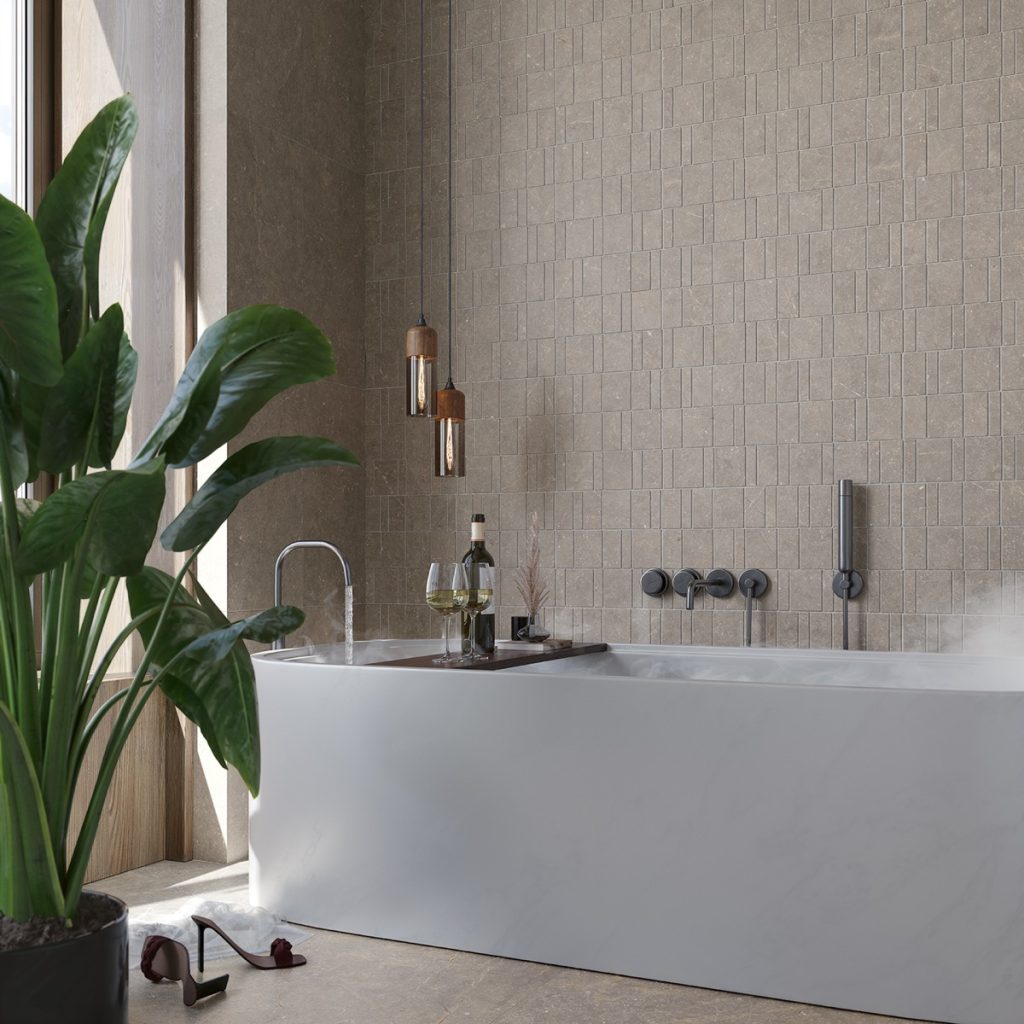 Bluenza est une interprétation sophistiquée de la pierre calcaire Belgian Blue Stone, marquée par la présence de fossiles marins et subtilement enrichie de fines veines blanches et d’argile dorée. Celles-ci traversent délicatement la surface, lui apportant profondeur visuelle et un caractère naturel distinctif.